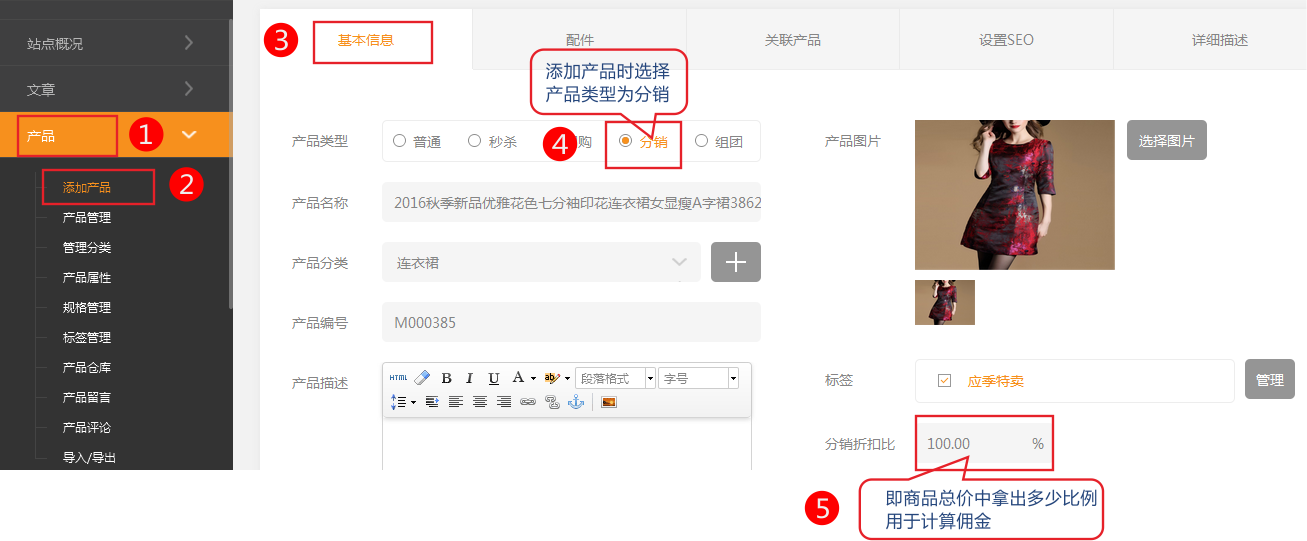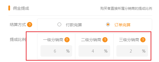 后台添加产品中分销折扣比例的作用是什么。 例原价是100元产品分销折扣比例设置为50% 一级分销获取提成比例为6% 那么公式为 100* 0.5* 0.06=3元