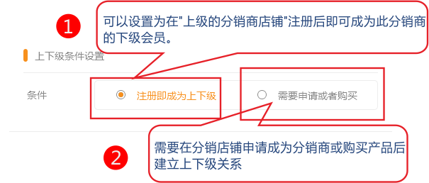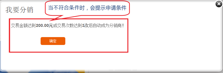 3.2 当申请不符合条件时会提示申请成为分销商的条件 4、 在分销-》拥金提成设置中可以设置各级分销商提成比例 三级分销,也即品牌商可以发展三级分销商,每一级分销商均可以往下再发展两级分销商。 基于三级分销,无限裂变的圈子理论,分销商可以无限裂变