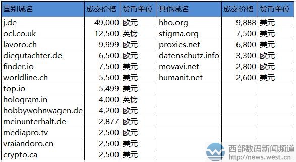 Sedo榜:单字符域名J.de六位数交易大放异彩! 三字母ani.com拍出32万元西部数码(west.cn)11月15日消息,据外媒消息,最新一期的sedo交易榜刚刚出炉。本期共有63个域名超2000美元成交,其中冠军由国别单字母域名j.de以49,000欧元摘得,约合人民币38万元。三字母ani.com则以49,000美元屈居第二,约合人民币32万元。