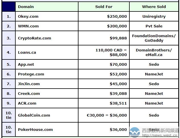 来源新闻资讯:域名okey.com以162万元登顶DN榜!三字母WMN.COM紧随其后