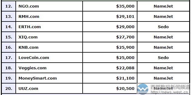 域名okey.com以162万元登顶DN榜!三字母WMN.COM紧随其后西部数码(west.cn)1月5日消息,刚刚DN榜公布了去年最后一期域名交易情况(12.18-12.31),其中夺得冠军宝座的是域名okey.com,成交价为250,000美元,约合人民币162万元;三字母域名WMN.COM则屈居第二,成交价为200,000美元,约合人民币130万元。 域名okey.com注册于1996年,距今已超20年,是“好、对、行”的意思,与我们常用的OK是同一个意思。虽然是英文单词,但okey含义通俗易懂,在全球使用频率都很高。所以,毋庸置疑与之对应的域名okey.com市场价值也十分不俗。目前访问域名okey.com,打开的是小象OKey网站,从网站简略的内容来看,小象是一个进入现实世界的安全电子钥匙。 排名第二的域名wmn.com由国外知名投资人出售,成交价约合人民币130万元。众所周知,三声母域名含义丰富,可挖掘的空间极其大,是终端升级品牌域名的不二选择。此次成交的wmn.com就在完成交易后,被终端迅速启用。目前访问该域名,跳转的是bulkpowders.co.uk。这是一家英国知名的运动营养补给品牌,而wmn正是旗下产品之一。 排名第三的是以99,888美元成交的域名cryptorate.com,约合人民币65万元。该域名有“加密速度、加密等级”等含义,比较适合搭建网络安全以及加密货币等虚拟币交易平台。目前一款名为Crypto Rates的货币交易软件与之对应。 随后是两枚非.com域名,其中加拿大国别域名loans.ca以88,000美元成交,该域名凭借其“贷款”的是当之无愧的金融米,很适合搭建融资理财类平台;另外三字母域名app.net则以70,000美元成交,该域名目前已被一家app开发公司启用。 其他域名交易价格,详见下表: